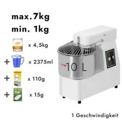 Teigknetmaschine – 22 Liter / 18 Kg – 1 Geschwindigkeit – Kessel Abnehmbar Und Rührwerk Aufklappbar