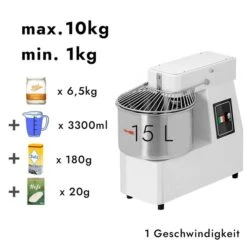 Teigknetmaschine – 22 Liter / 18 Kg – 2 Geschwindigkeiten -Kessel Abnehmbar Und Rührwerk Aufklappbar