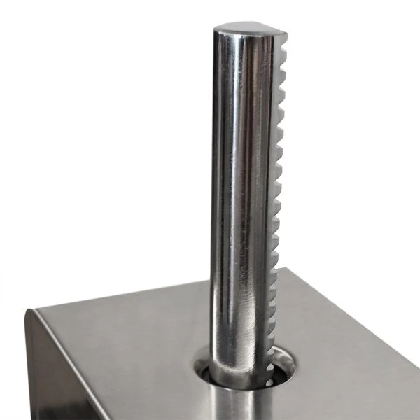 Extrem robuster Wurstfüller für den manuellen Betrieb in vertikaler Ausführung inkl. vier Wurstfülltrichter mit unterschiedlichen Durchmessern.